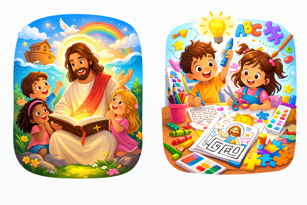 Enjoy coloring pages, puzzles, games, and fun challenges that help you remember God’s Word while having a great time.